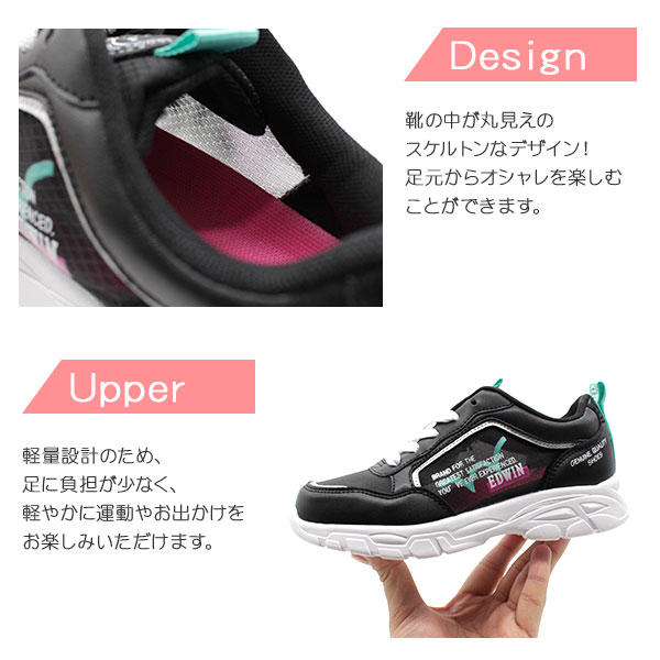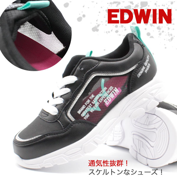 【在庫一掃セール 4/28 1:59まで】 スニーカー 子供 キッズ ジュニア 靴 黒 白 ブラック ホワイト 軽量設計 軽い 動きやすい カジュアル 通気性 エドウィン EDWIN EDW-3567 母の日
