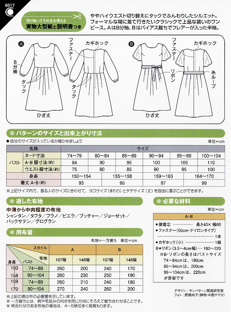 実物大型紙大人 トップスワンピース 6017 サンパターン [送料無料] 大人 手作り
