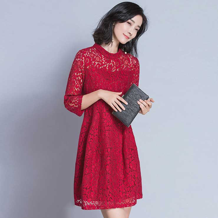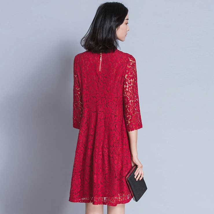 大人上品な総レース仕様のフレアワンピース ■ ワンピース 結婚式 ドレス 結婚式 二次会 入園式 卒業式 大人 上品 入学式 OL レディース ミディアム丈 5分袖・7分袖 レース 春 夏 秋 冬 【8000円以上 送料無料 】