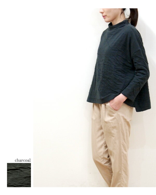 着丈と袖丈を短めにし、スッキリしたシルエットに仕上げ、 ゆったりとしたサイズがリラックス感たっぷりのトップスです。