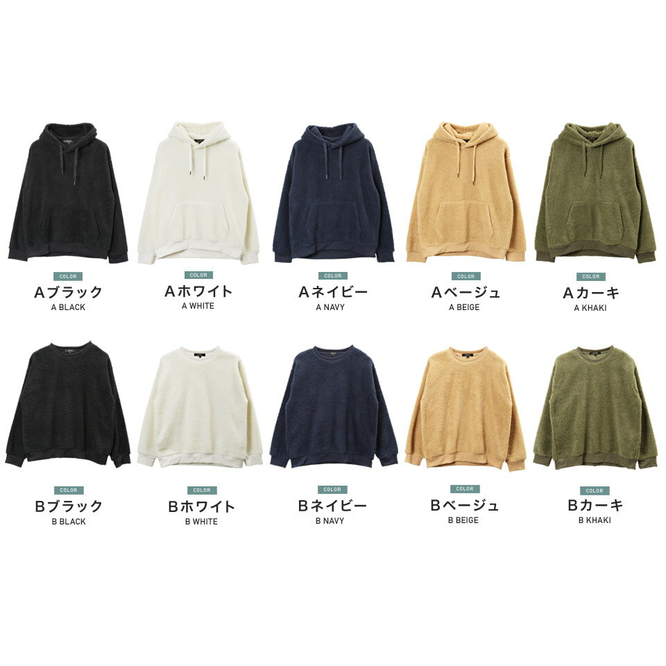 ボア パーカー トレーナー メンズ◆roshell(ロシェル) シープボアクルーネックトレーナー & プルパーカー◆もこもこ おしゃれ 無地 フード メンズファッション 秋服 冬服 秋冬 プルオーバー 保温 暖かい あったか 防寒